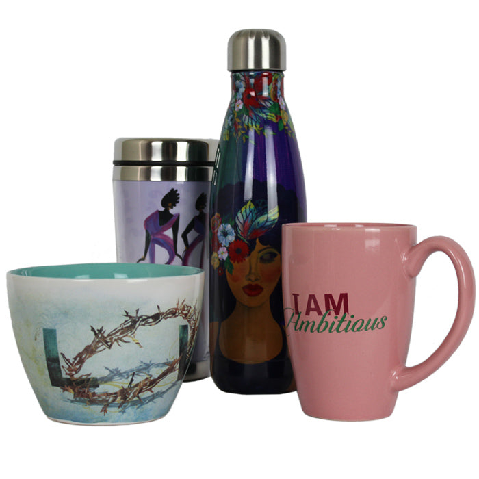 Stay hydrated in style with our fabulous African American designed drinkware collection. We’ve got something for every sip and every trip—coffee mugs, latte mugs, hot and cold drink travel mugs, and sleek stainless steel water bottles. All on sale right now!