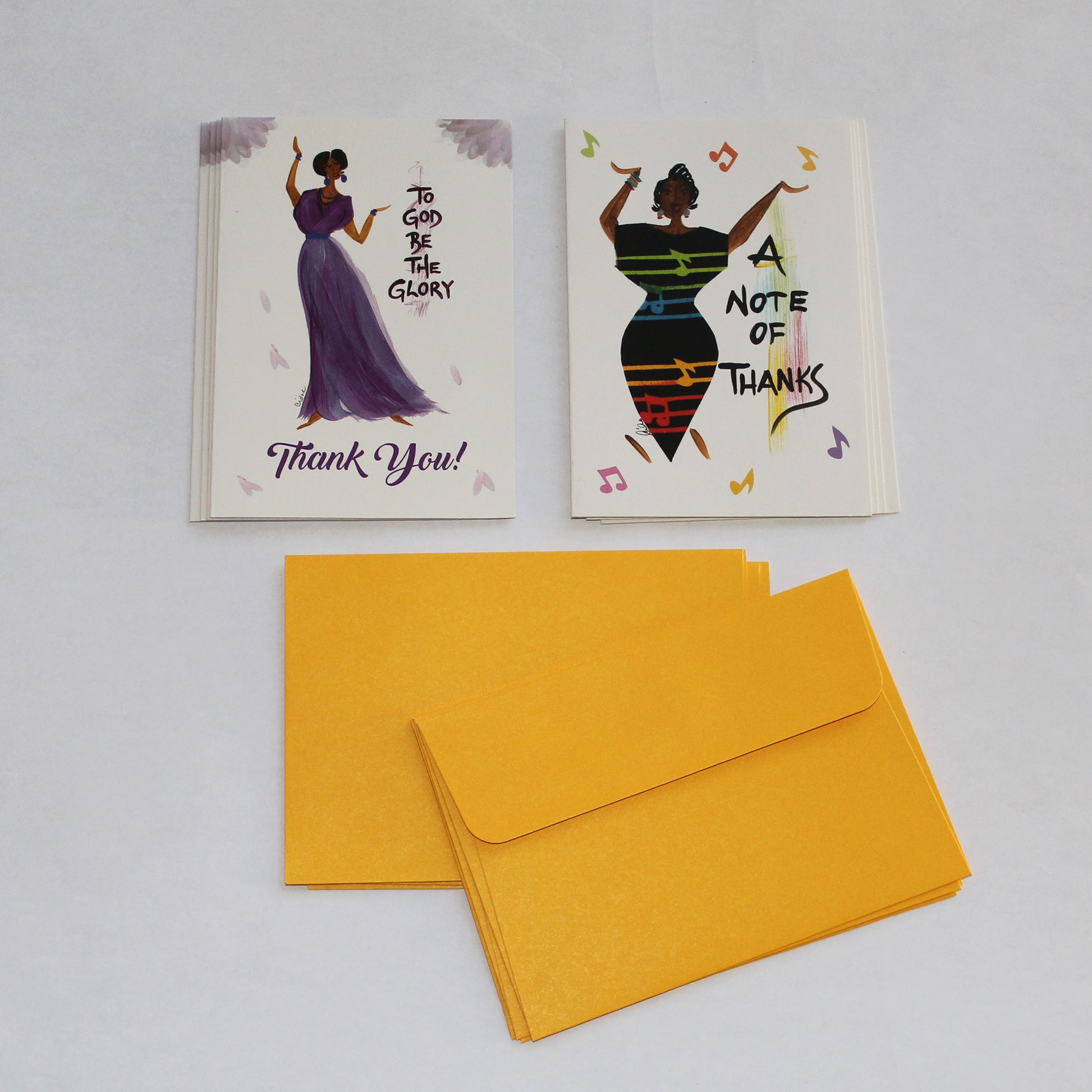 Designer blank note cards featuring the art of Cidne Wallace. Included are eight African American thank you cards (2 designs). Each greeting card is designed to make the recipient feel valued and appreciated.