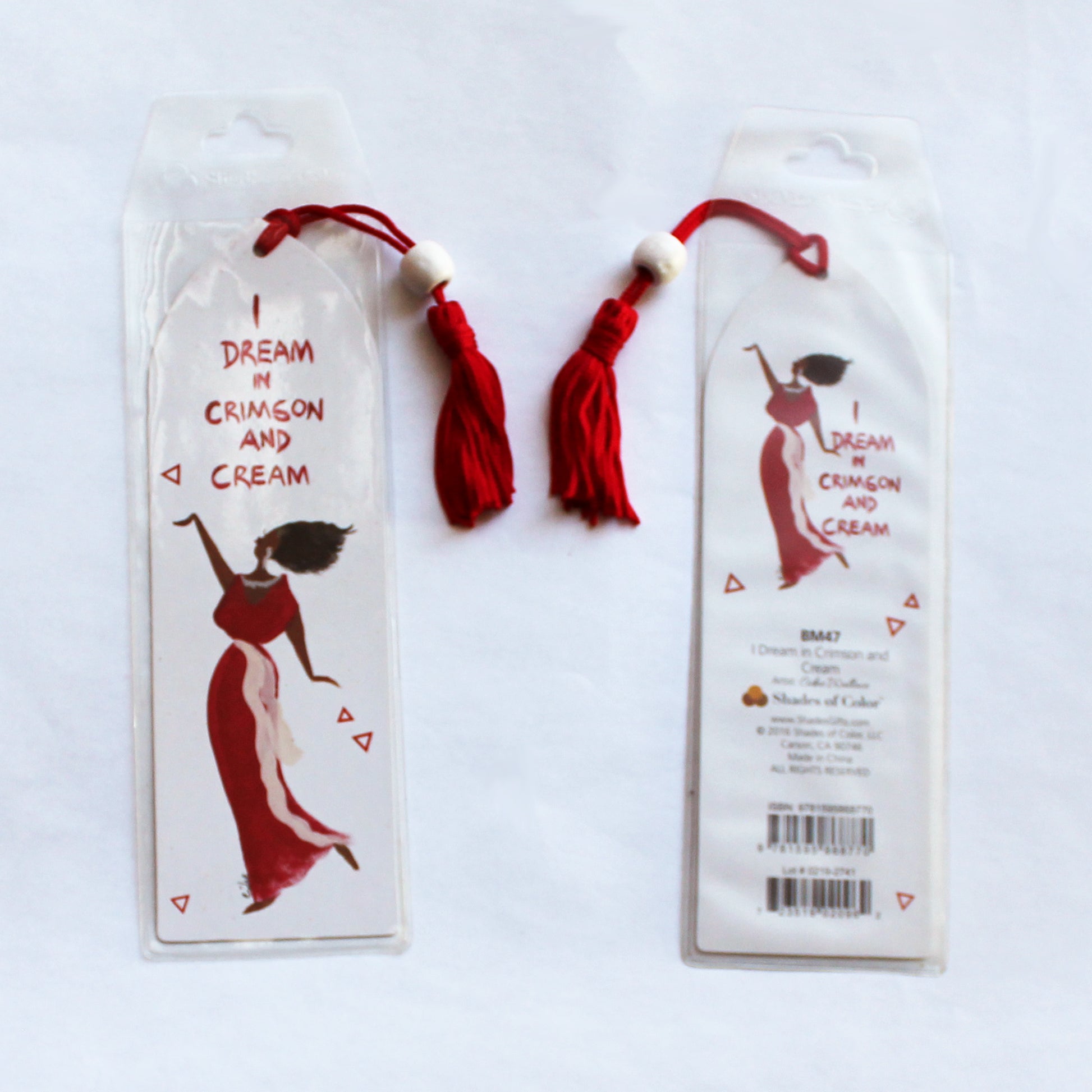 Keep place in your favorite book and celebrate your sorority with this sturdy bookmark. Featuring African American art from Cidne Wallace, this crimson and cream themed bookmark is adorned with a beaded tassel and protected by a clear plastic sleeve.