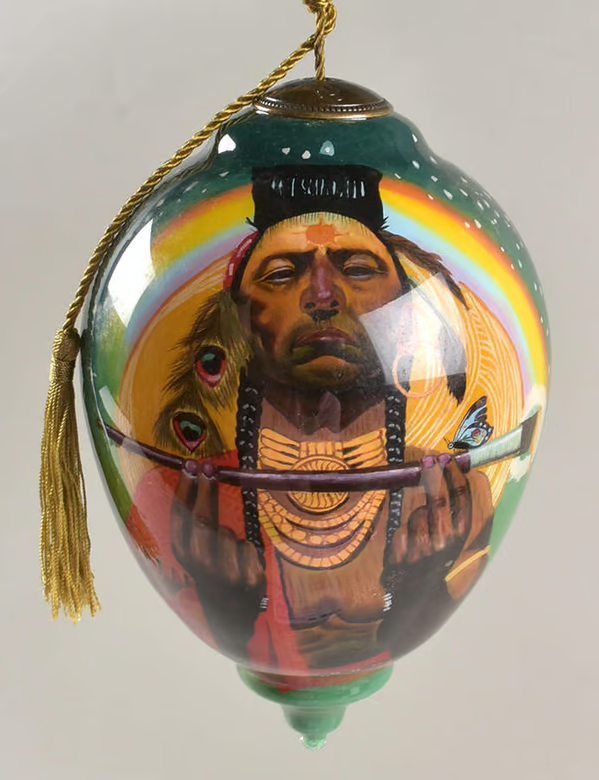 In Mandarin, Ne'qwa describes this centuries-old artistic tradition of painting on the inside of glass.This technique creates a brilliance and luster that is not attainable with standard painting methods. Through a small opening in each ornament, the artist uses delicate brush strokes to hand-paint on the inside of mouth-blown glass. From outlining to shading to color application, all work is painstakingly done in freehand. The artwork was originally created by Thomas Blackshear Neqwa.