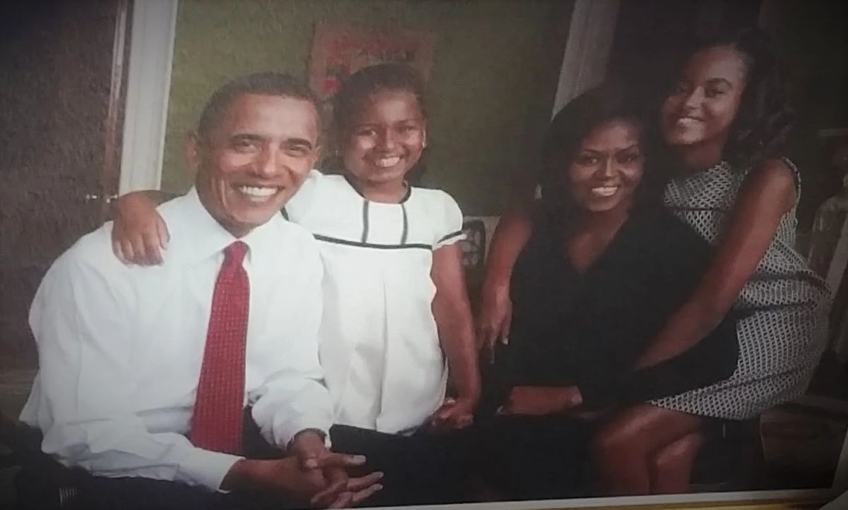 President Barack Obama, his wife, First Lady Michelle Obama, and their daughters, Malia and Sasha, pose for a family portrait by famed photographer, Annie Leibovitz. White House Green Room September 1, 2009.