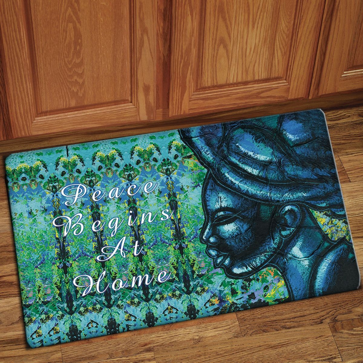 Peace Begins At Home Interior Floor Mat by Poncho Brown